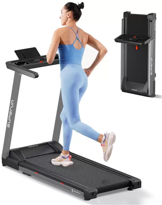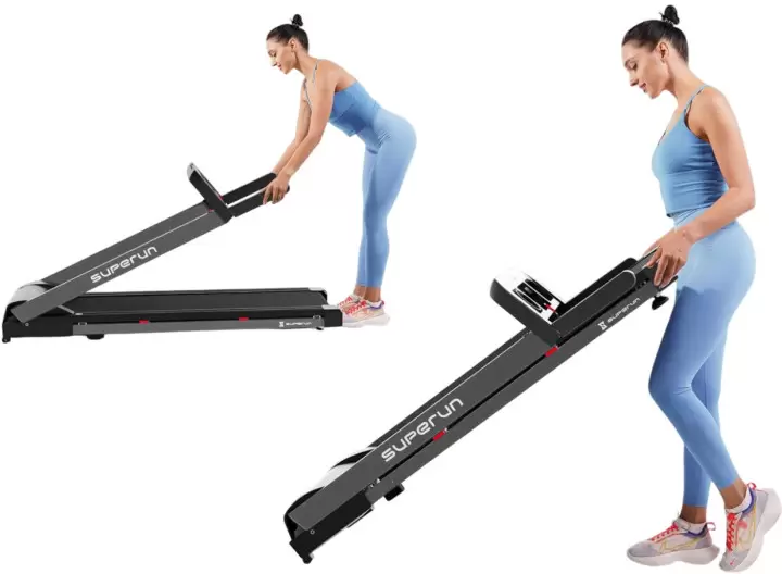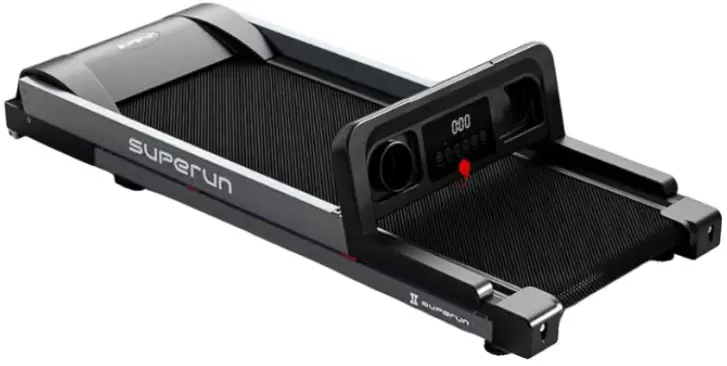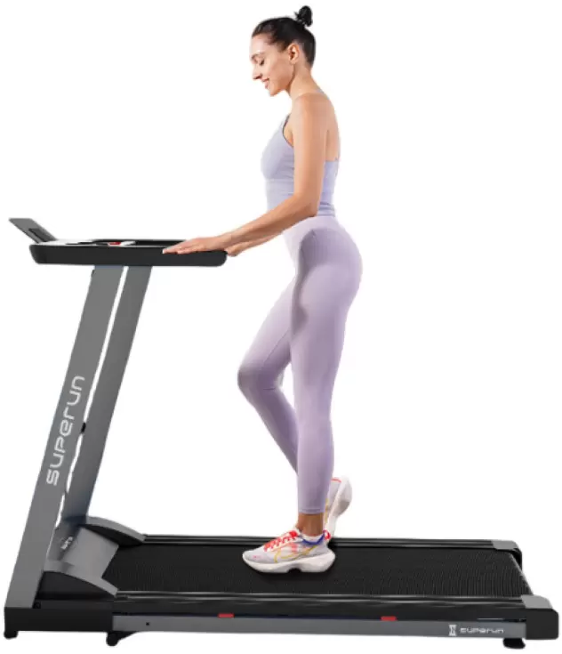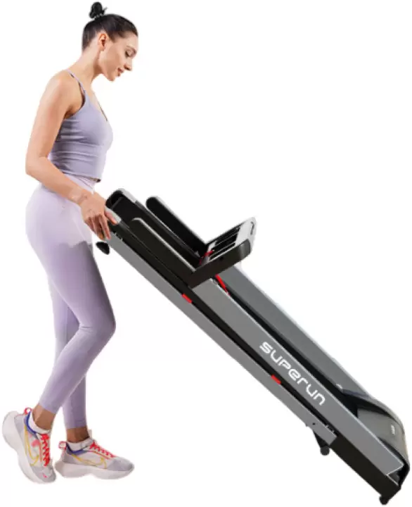 Беговая дорожка DFC SUPERUN Беговая дорожка DFC SUPERUN — электрическая модель для домашнего использования, сочетающая надежность, функциональность и стильный дизайн. Она предназначена для улучшения физической формы в комфортных домашних условиях, поддерживая пользователей с разным уровнем подготовки. Технические характеристики: Мощность и нагрузка: Двигатель с пиковой мощностью 2 л.с. Максимальный вес пользователя — 120 кг. Беговое полотно: Размер рабочей зоны 42 х 113 см. Полотно толщиной 1,4 мм и дека 12 мм обеспечивают амортизацию и долговечность. Диапазон нагрузок: Скорость регулируется от 1,2 до 11,5 км/ч. Механическая регулировка угла наклона на 2 уровня. Габариты: Размеры в рабочем состоянии 137 х 58 х 97 см. Имеет складную конструкцию для удобства хранения. Оснащение и эргономика: Тренажер оснащен поднимающимися ручками для бега на высокой скорости. Для комфорта предусмотрены подставка под планшет, два держателя для бутылки и мелких вещей, а также компенсаторы неровностей пола. Рама изготовлена из легированной стали, что гарантирует устойчивость и долговечность конструкции. DFC SUPERUN — это функциональный и компактный тренажер для эффективных кардиотренировок, позволяющий заниматься бегом и ходьбой дома с учетом индивидуальных предпочтений и целей.