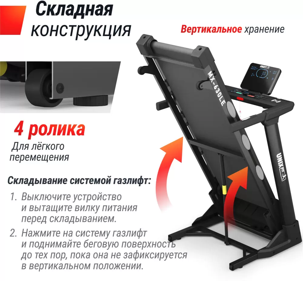 | Конструкция | Регулировка угла наклона; Транспортировочные ролики; Компенсатор неровности пола; Складная конструкция |