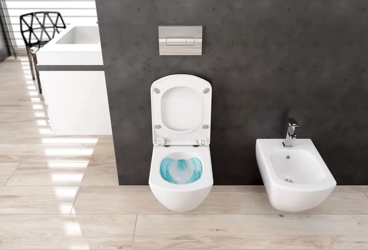 - Брали вместе в подвесным унитазом этой же коллекции. И это очень круто, когда сантехника выпускается коллекциями, можно сделать полностью завершённый интерьер вашей ванной комнаты, а не переживать, что что-то не впишется.