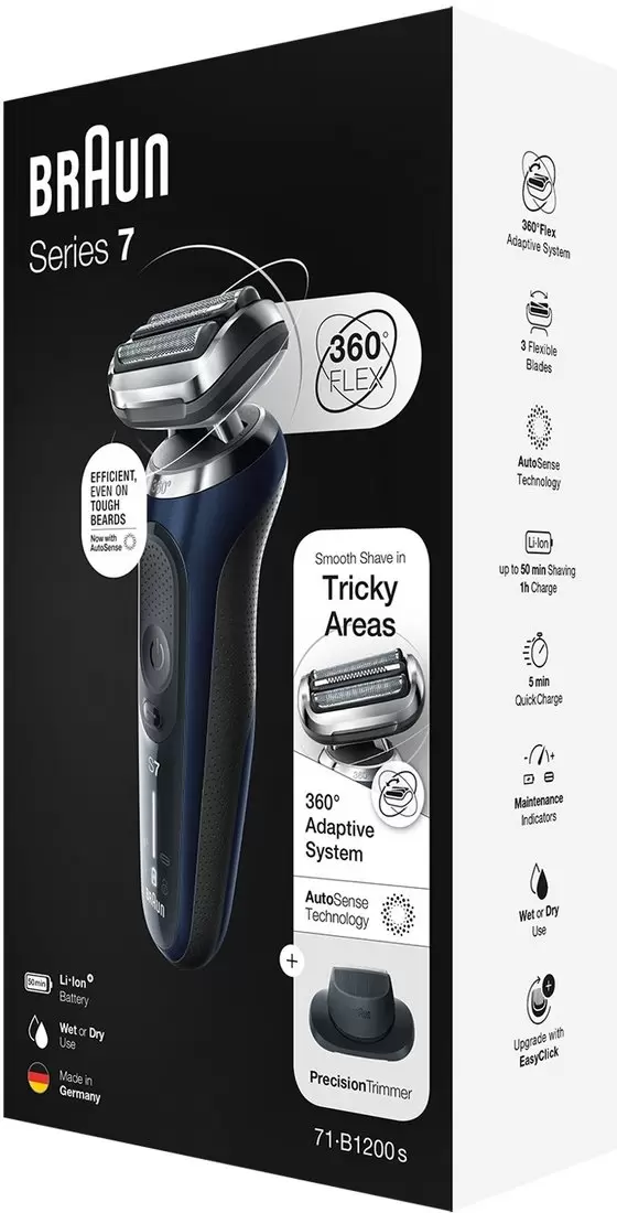 Информация о характеристиках, комплекте поставки и внешнем виде товара является справочной и получена из открытых источников (официальные сайты и каталоги производителей). Перед покупкой уточняйте у продавца интересующие Вас параметры и актуальную цену на Электробритва Braun Series 7 71-B1200s Wet & Dry.
