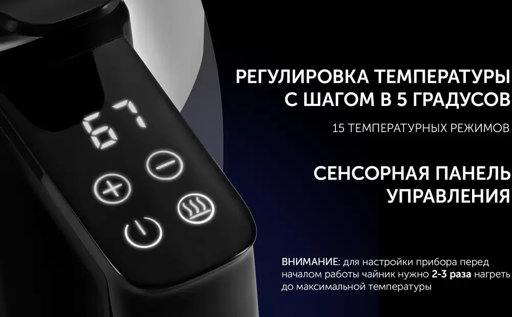 | Дополнительные функции | Дисплей; Подсветка воды; Индикация включения; Индикация температуры; Поддержание тепла; Сенсорное управление |