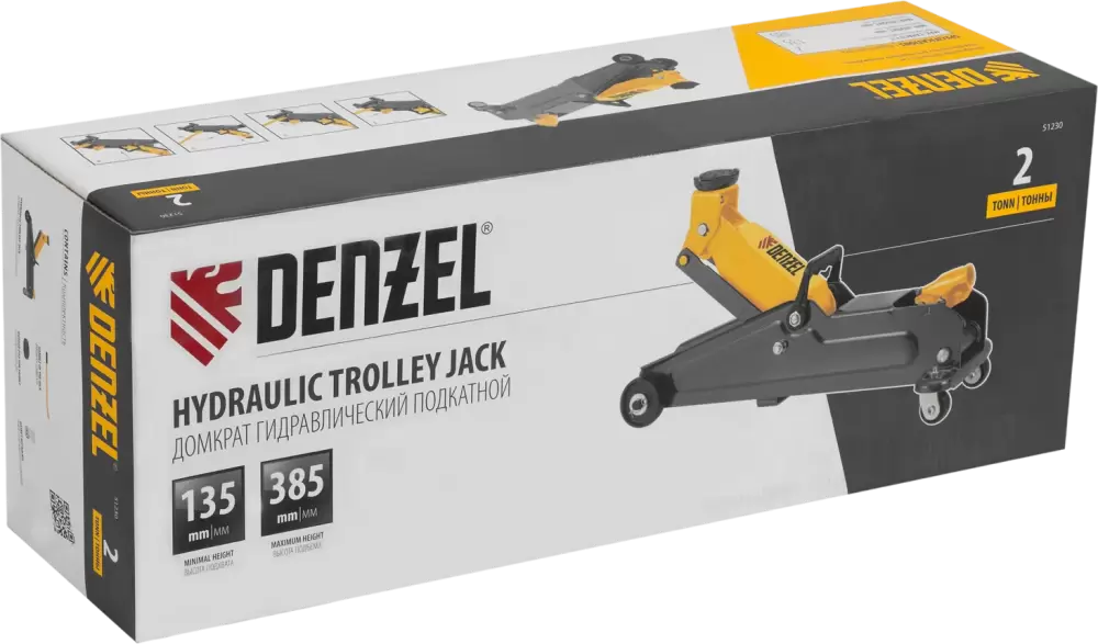 Код товара: 000002319278. ✅ Гидравлический подкатной домкрат Denzel 51230 с высотой подхвата 135 мм идеально подходит для плавного подъема легковых автомобилей и других грузов массой до 2 т на высоту до 385 мм. Этот домкрат станет незаменимым помощником для владельцев автомобилей со стандартным клиренсом.✅ Преимущества этого домкрата включают надежность, так как подъемный рычаг имеет усиленные боковые стороны, что обеспечивает долговечность и безопасность в эксплуатации. ✅ Для защиты от поломки предусмотрен предохранительный клапан, который не допускает подъема груза массой более 2 т, что гарантирует безопасность при работе.✅ Аккуратная работа обеспечивается благодаря резиновой опоре, которая защищает днище автомобиля от нежелательных повреждений, что особенно важно для поддержания внешнего вида вашего автомобиля.✅ Комфортное перемещение домкрата обеспечивается эргономичной рукояткой с подпальцевыми выемками, что делает его использование более удобным и простым. ⚠️ Не забывайте о безопасности при использовании подкатного домкрата, следите за его состоянием и соблюдайте инструкции.