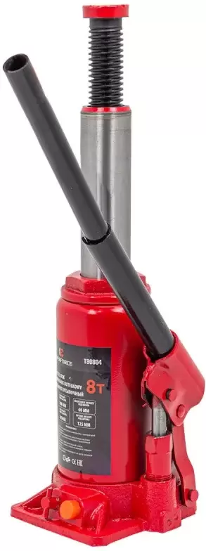Код товара: 3054097. Фирменный ПОДАРОК при заказе через корзину сайта! Стоимость товара на сайте указана с учетом скидки.информация о наличии и сроках доставки носит справочный характер.точную информацию уточняйте у менеджера. Основные - Вид домкрата: бутылочный - Механизм: гидравлический - Грузоподъемность: 8 т - Максимальная высота подъема: 385 мм - Цвет: красный Технические характеристики - Минимальная высота подъема: 200 мм - Ход штока: 125 мм Размеры и вес - Вес: 4.88 кг Комплектация - Сумка для хранения: Нет - Кейс: Нет