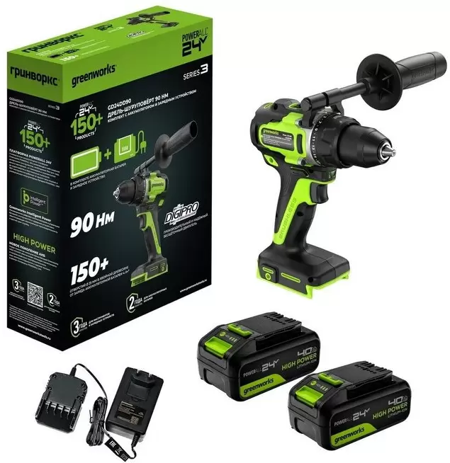 Информация о характеристиках, комплекте поставки и внешнем виде товара является справочной и получена из открытых источников (официальные сайты и каталоги производителей). Перед покупкой уточняйте у продавца интересующие Вас параметры и актуальную цену на Дрель-шуруповерт Greenworks GD24DD90 (3707507CUD).
