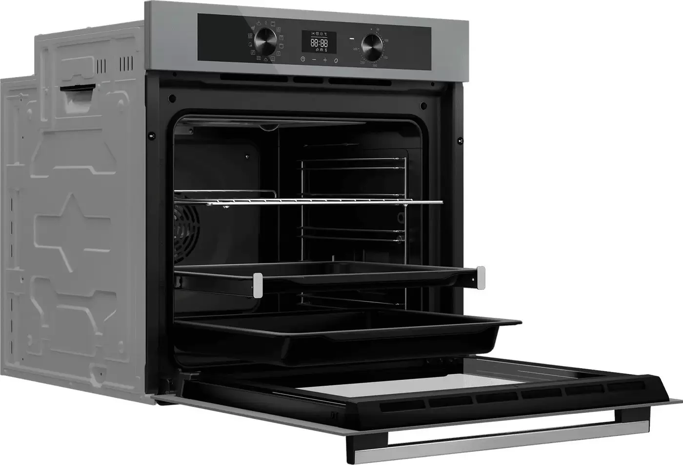 Код товара: 4155683. Фирменный ПОДАРОК при заказе через корзину сайта! Стоимость товара на сайте указана с учетом скидки.информация о наличии и сроках доставки носит справочный характер.точную информацию уточняйте у менеджера. Тип духового шкафа: электрический Класс энергопотребления: A+ Управление: электронное Размер: полноразмерный (классический) Цвет: серый Мощность подключения: 3 500 Вт Объём духового шкафа: 78 л Очистка духового шкафа: каталитическая, паровая Каталитическая очистка: задняя стенка Направляющие: проволочные + телескопические Количество телескопических направляющих: 1 Конвекция: Да Микроволны: Нет Приготовление на пару: Да Особенности дизайна: утапливаемые переключатели Индикация: светодиодная Функциональные особенности: плавное закрывание, таймер, звуковой сигнал, термостат, освещение Тип таймера: с отключением программы Камеры с раздельным приготовлением: Нет Максимальная температура: 300 °C Дверца духовки: откидная Количество стекол дверцы духовки: 2 Количество режимов работы: 13 Автоматические программы приготовления: Нет Гриль: Да электрический Режимы работы: нижний нагрев, гриль + конвекция, поддержание температуры (подогрев), подготовка теста Дополнительные режимы: СушкаВыпечка с конвекциейПиццаВыпечка Термощуп: Нет Комплектация: стандартный противень, глубокий противень, решетка Количество противней: 2 Виды противней и форм: эмалированный Ширина: 59.5 см Глубина: 56.5 см Высота: 59.5 см Вес: 29 кг Высота: 60 см Ширина: 56 см Глубина: 56 см