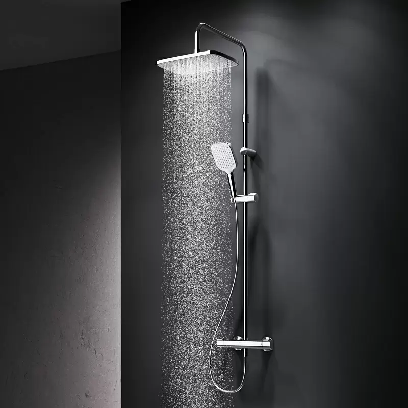 Хорошая немецкая система, мне очень нравится. Купила ее уже давно, все руки не доходили написать отзыв. За год работы система не дала сбой ни разу, так что придираться не к чему. Все работает как часы, видно что производители не пожалели денег при производстве. Покупала год назад, кстати, значительно дороже, но о потраченных деньгах до сих пор ни капли не жалею. Если детально описывать систему, то первое слово которое приходит на ум - это добротная. Она и весит очень прилично, я по незнанию заказала с самовывозом, так еле эту коробку довезла, руки потом болели пару дней. Сама штанга явно сделана из толстого сплава, потому что она даже греется не очень сильно, когда по ней вода горячая течет. Все соединения отлично подошли друг к другу, деталей полностью хватило, ничего из своего кармана докупать не пришлось. Очень, конечно, клевый верхний душ, я вообще не представляю человека, кому бы он не понравился. Струйки мелкие, очень приятно расслабляют и снимают стресс. Ручной душ самый обычный, не поломался до сих пор, нет никаких струй в бок, шланг работает - вот и хорошо. Переключатель самый обычный, работает тоже как часы, все хорошо переключается и регулируется. Мы эту всю прелесть не надо после каждого душа, просто тряпочкой протираю при уборке, ничего не прилипает к нему. На мой взгляд, это хорошая покупка, я бы всем, кто ищет такого плана систему, советовала.