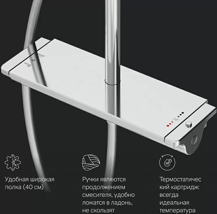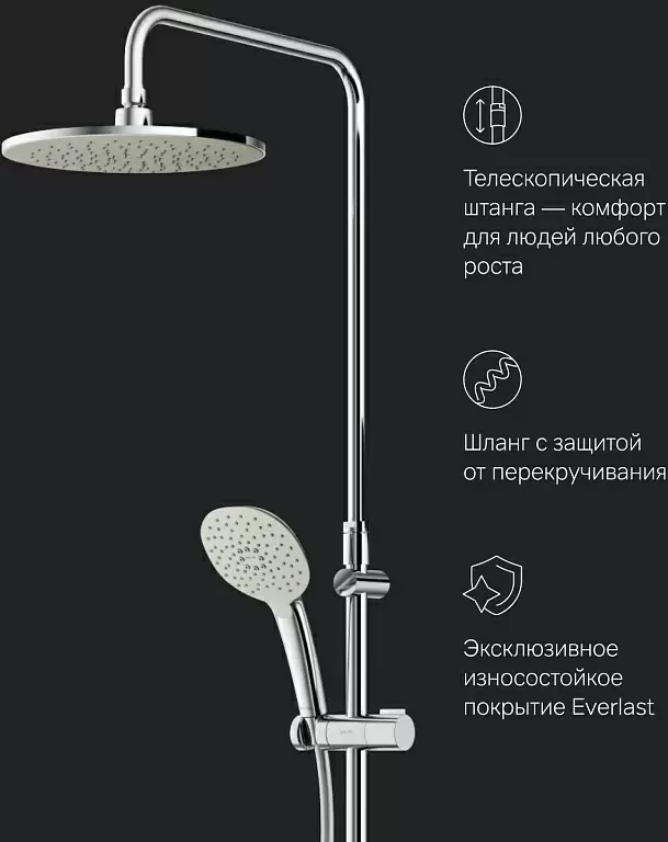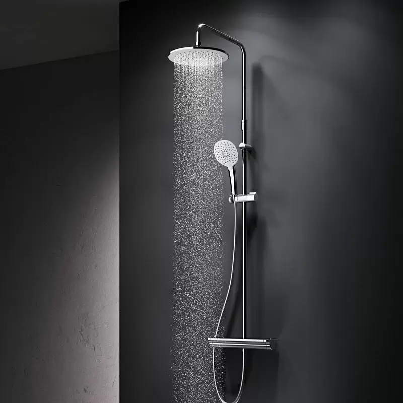 1 шт. Б/Н расчёта нет, кредита и рассрочки нет. Не работаем с юр. лицами. Профессиональная консультация и подбор техники. Быстрая доставка по Минску в квартиру, будние дни. Доставка по РБ до подъезда. Программа лояльности. Вежливый и опытный персонал. О товаре: душевая система (с верхним душем), настенный монтаж, термостатический смеситель, верхний душ 254 мм, ручной душ 120 мм