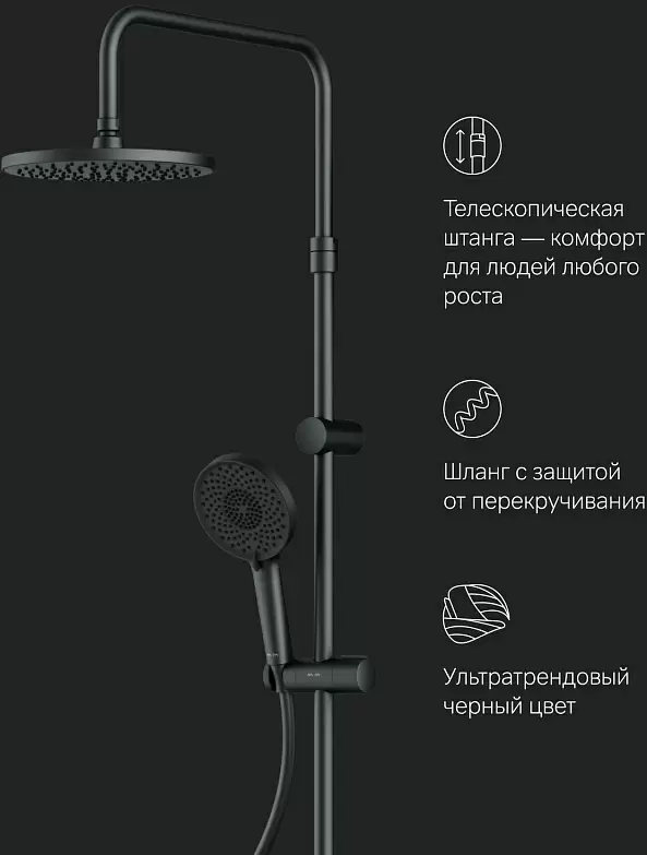 душевая система (с верхним душем), настенный монтаж, механический смеситель, верхний душ 220 мм, ручной душ 120 мм. Возможны дополнительные скидки : при заказе комплекта из нескольких наименований, при повторной покупке в нашем магазине