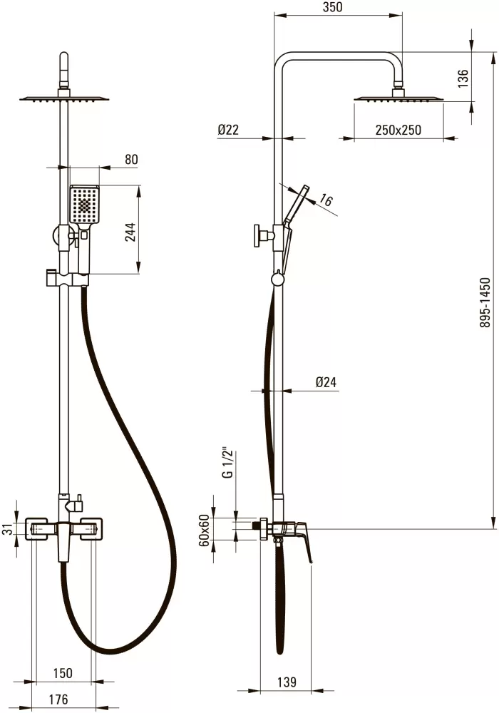 Код 11300490. При заказе от двух товаров всегда скидки! Только оригинальный товар!!! О товаре: душевая система (с верхним душем), настенный монтаж, механический смеситель, верхний душ 250 мм, ручной душ 80 мм