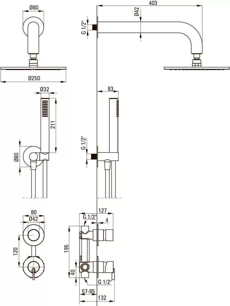 душевая система (с верхним душем), скрытый монтаж, механический смеситель, верхний душ 250 мм, ручной душ 32 мм. С юр. лицами не работаем, доставка в любую точку РБ