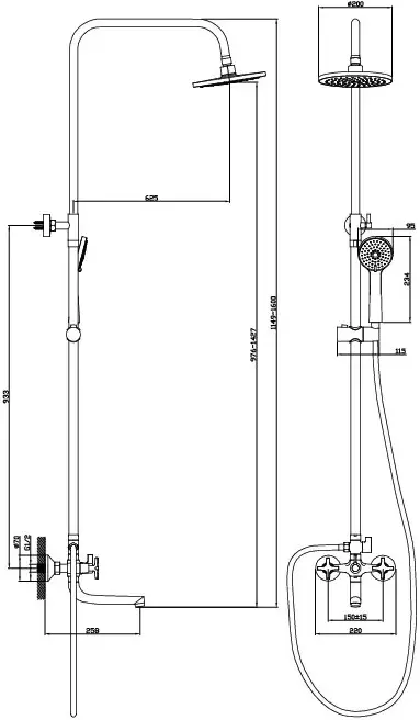 Код товара: 2968726. Все товары указаны со скидкой. Оперативная доставка по Минску и РБ. У нас только оригинальная продукция по низким ценам. Гарантия в официальном сервисном центре. Возможность рассрочки уточняйте у оператора! Не является публичной офертой. Основные - Тип: душевая система (с верхним душем) - Монтаж: настенный - Смеситель/вентиль: вентиль - Излив: Да - Комплектация: верхний душ, штанга, ручной душ (лейка), держатель лейки, шланг, смеситель, излив для ванны - Цвет: хром - Цвет производителя: хром Конструкция - Верхний душ: Да - Форма верхнего душа: круглая - Диаметр (ширина) верхнего душа: 200 мм - Ручной душ: Да (c регулировкой по высоте) - Форма ручного душа: круглая - Диаметр (ширина) ручного душа: 95 мм - Ограничение расхода воды: Нет - Ограничение температуры: Нет Размеры и вес - Вылет верхнего душа: 625 мм - Общая длина: 1 149 — 1 600 мм