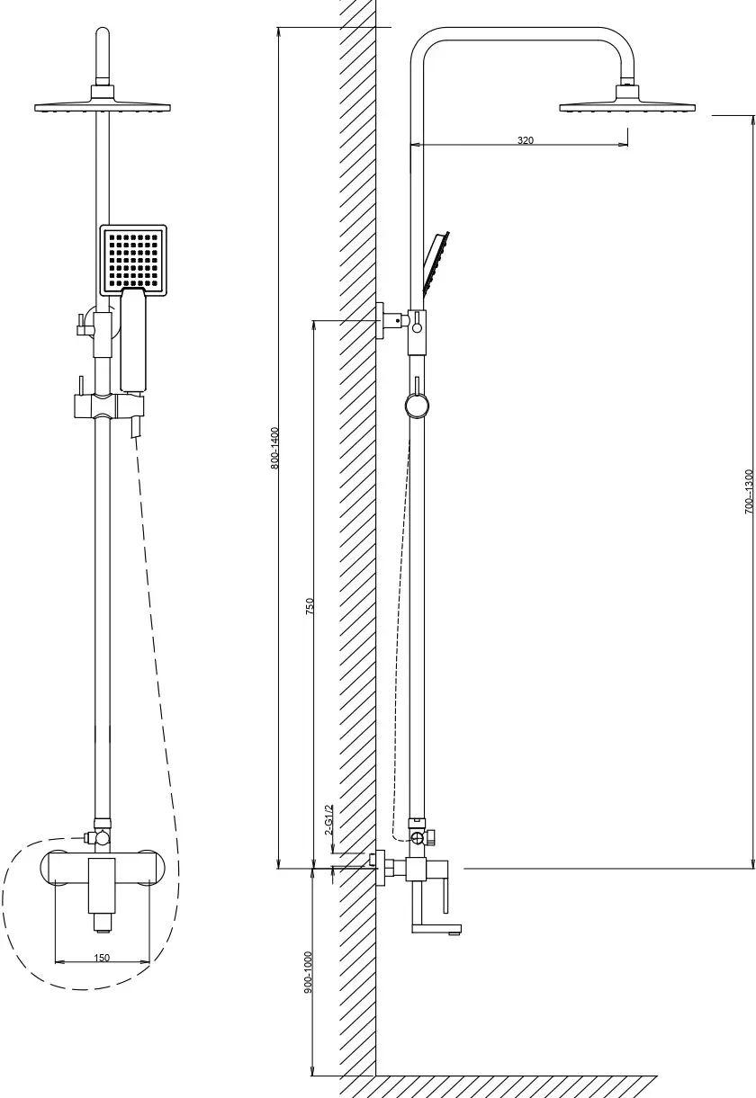 5. ручной душ можно устанавливать на любом уровне т. к. есть двигающееся крепление