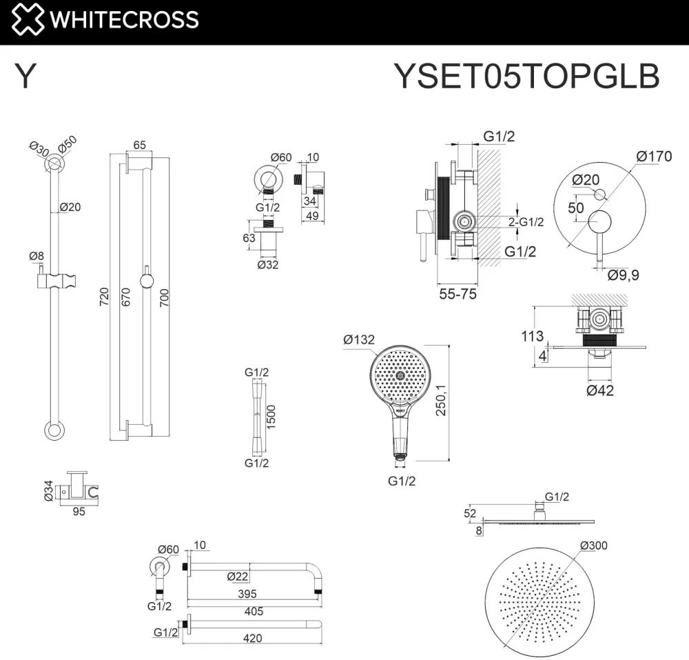 Информация о характеристиках, комплекте поставки и внешнем виде товара является справочной и получена из открытых источников (официальные сайты и каталоги производителей). Перед покупкой уточняйте у продавца интересующие Вас параметры и актуальную цену на Душевая система Whitecross Y YSET05TOPGLB.