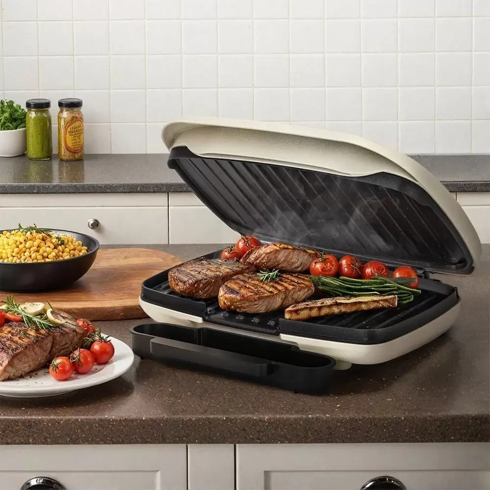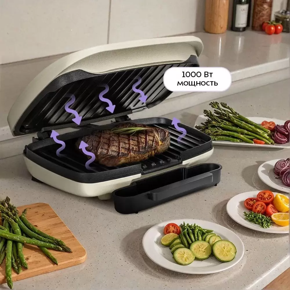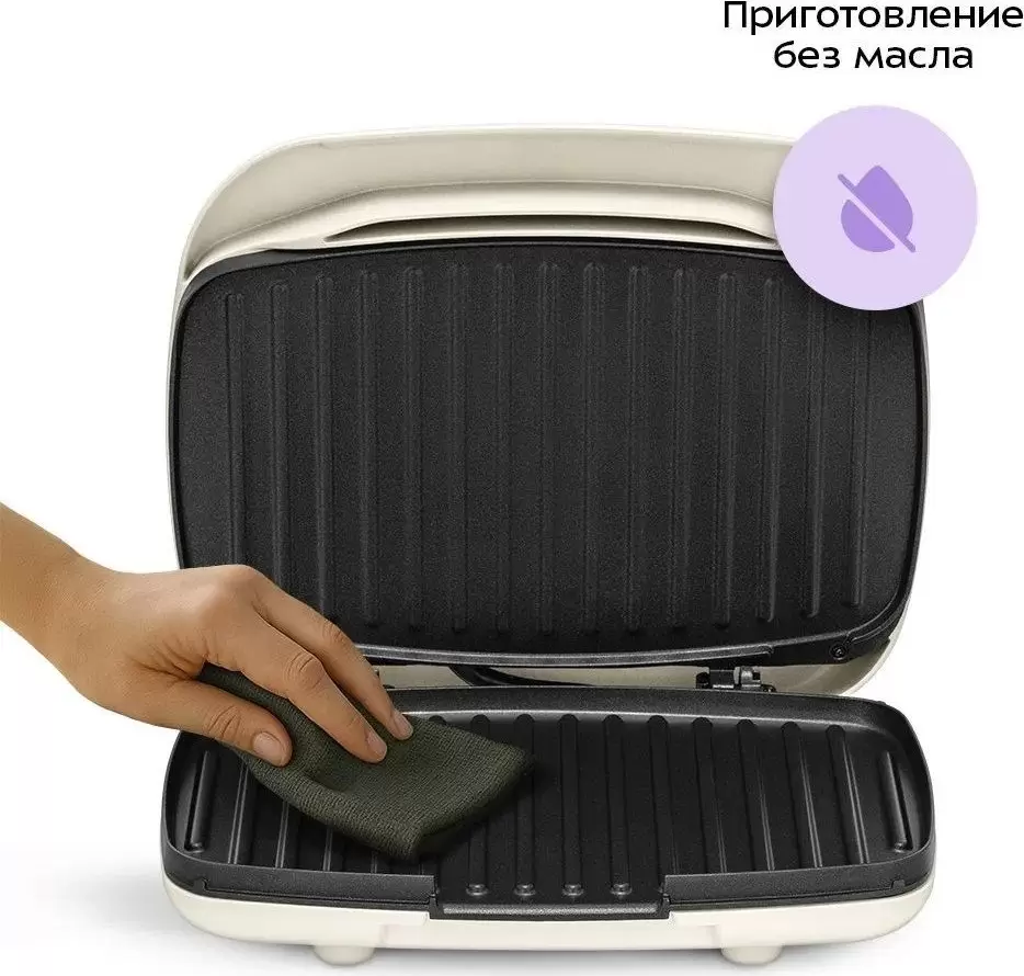 Общие характеристики : Тип: закрытый Конструкция: двухсторонний (гриль-пресс) Мощность: 1000 Вт Регулировка температуры: есть Ширина рабочей поверхности: 265 мм Размещение: настольный Рабочая поверхность: рифленая плита Материал рабочей поверхности: алюминий Съемная рабочая поверхность: нет Съемный поддон для жира: есть Таймер: нет Цвет: бежевый Глубина рабочей поверхности: 160 мм Управление со смартфона: нет Комплектация: съемный поддон для сбора жира, инструкция Регулировка положения верхней крышки: нет Размеры и вес : Длина: 238 мм Ширина: 276 мм Высота: 101 мм Вес: 1.7 кг
