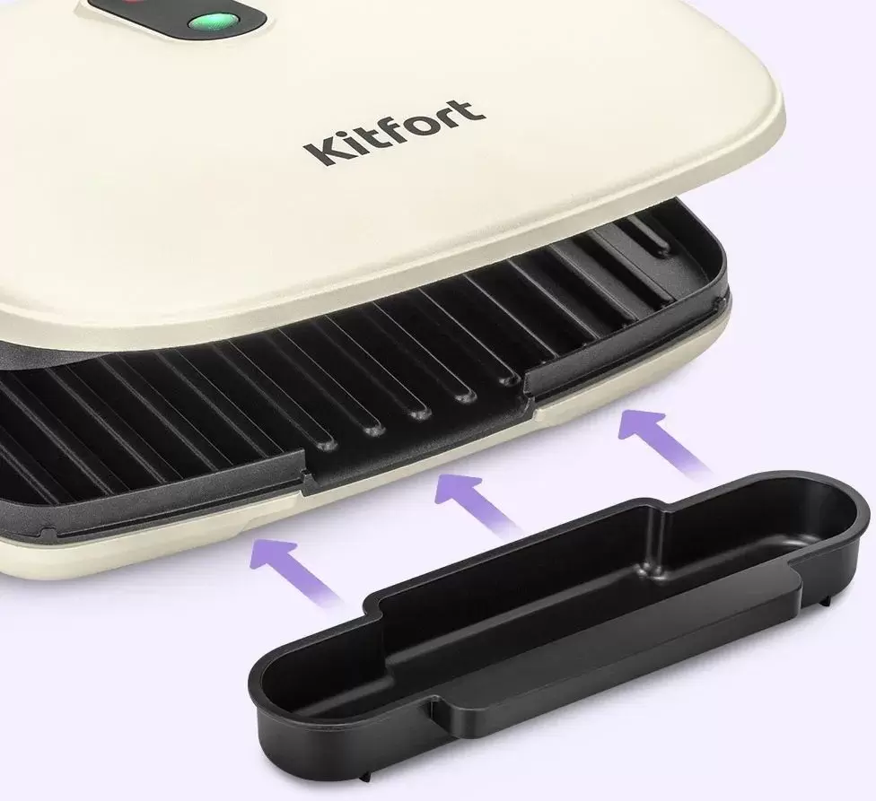 Электрогриль Kitfort КТ-3686 Бренд KITFORT Тип Электрогриль Мощность 1000 Вт Материал корпуса Пластик Цвет Бежевый Рельефная поверхность гриля Коллектор для воды и сбора капель Антипригарное покрытие гриля Термоизолированный корпус Контактный гриль Вес 1.7 кг