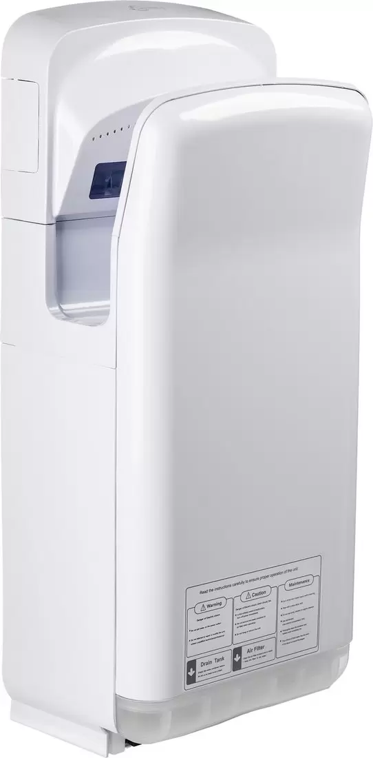 Сушилка для рук. Мощность: 2000 Вт. Скорость воздушного потока: 16 м/с. Влагозащита: IPX1. Защита от перегрева. Максимальная температура воздуха: 53 °C. Время сушки: 20 с.
