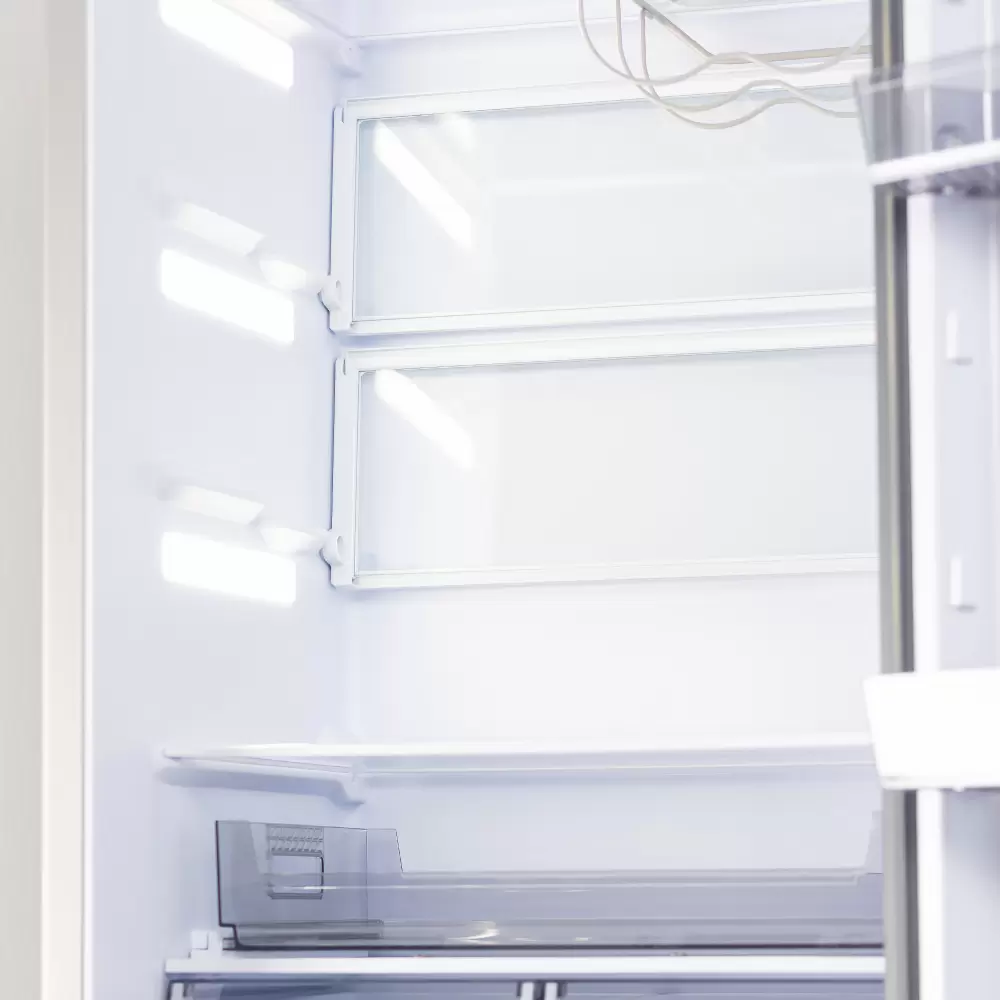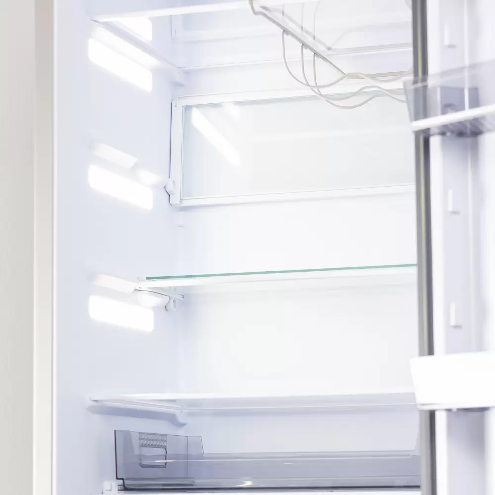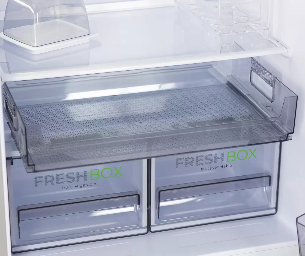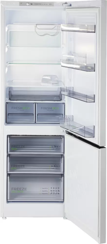 Очень высокий и очень вместительный, по внутреннему пространству все супер эргономично, складная полка - мое почтение, зона фреш - супер, еще бы бутылочная полка и был бы полный фарш. Не очень лоток под яйца, используем от старого холодильника. Полки супер широкие в сравнении со старым холодильником кажется, что чуть ли не в два раза. По отзывам в интернете знали, что нужно обязательно проверять дверцы на предмет вмятин и царапок при доставке, у нас все было ок.