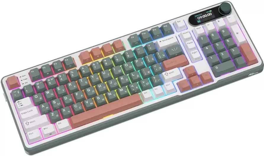 игровая для ПК, механическая, RK Pale Green, ход тактильный, пластик, интерфейс подключения - USB-A/радио/Bluetooth/USB-C, подсветка, кириллица: нет, USB-хаб, цвет белый/зеленый/коричневый