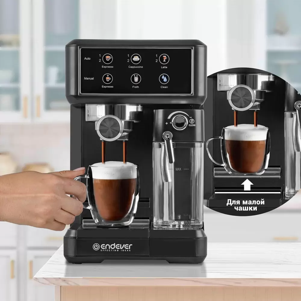 Капучинатор; Капучино/латте в одно касание; Подача горячей воды; Подогрев платформы для чашек |