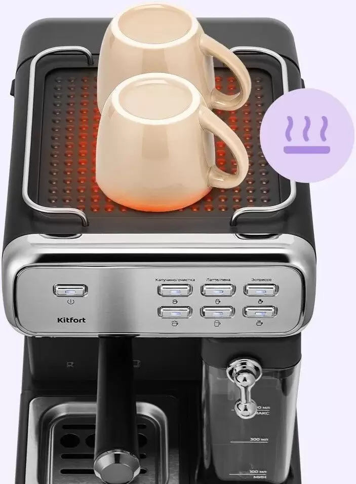 Капучинатор; Капучино/латте в одно касание; Подогрев платформы для чашек |