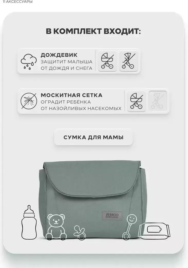 Дождевик; Нижняя корзина; Противомоскитная сетка; Сетчатые вставки; Сумка; Чехол на ноги |