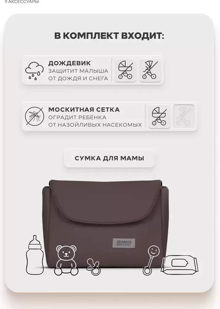 Дождевик; Нижняя корзина; Противомоскитная сетка; Сетчатые вставки; Сумка; Чехол на ноги |