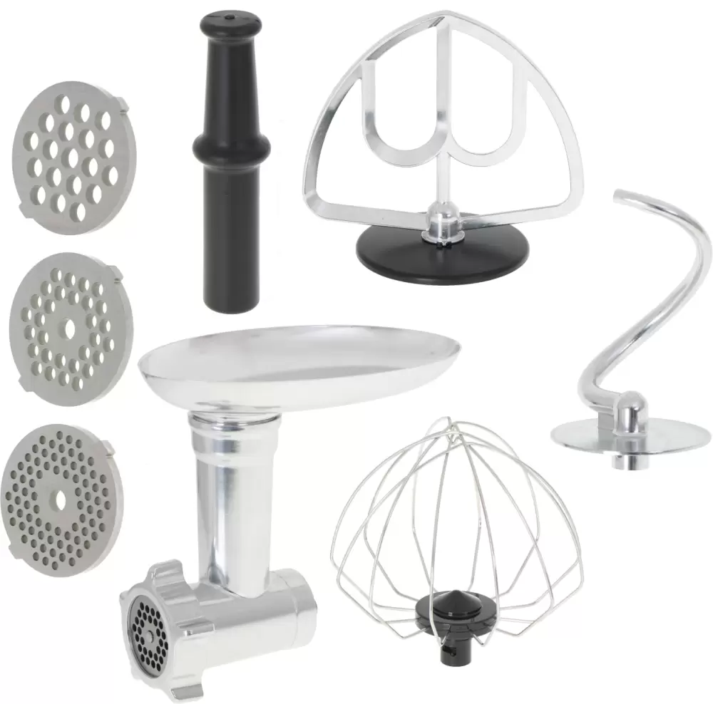 Венчики для взбивания; Насадка для смешивания; Насадка для теста; Шнековая мясорубка |