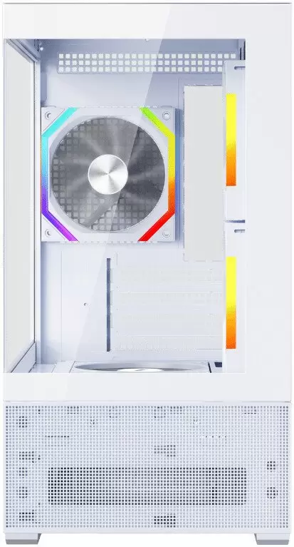 Mini Tower, БП отсутствует, для плат micro-ATX/mini-ITX, с 5 вентиляторами в комплекте, окно: закаленное стекло, видеокарта до 390 мм, охлаждение ЦП до 170 мм, пылевой фильтр - сверху/снизу, 1xUSB 2.0, 1xUSB-A 3.2 5Гбит/с, цвет белый