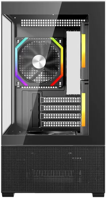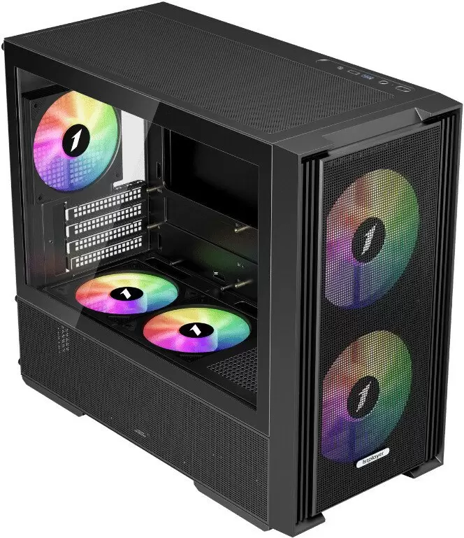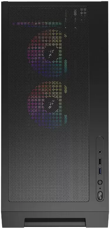 Номер товара - 539143-5. Mini Tower, БП отсутствует, для плат micro-ATX/mini-ITX, с 5 вентиляторами в комплекте, окно: закаленное стекло, видеокарта до 390 мм, охлаждение ЦП до 170 мм, пылевой фильтр - сверху/снизу, 1xUSB 2.0, 1xUSB-A 3.2 5Гбит/с, цвет черный