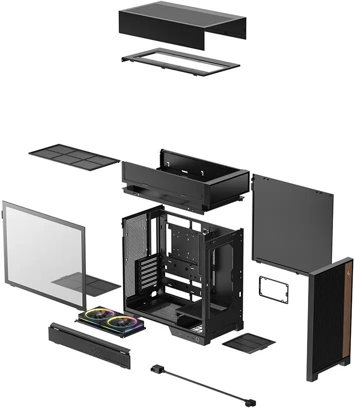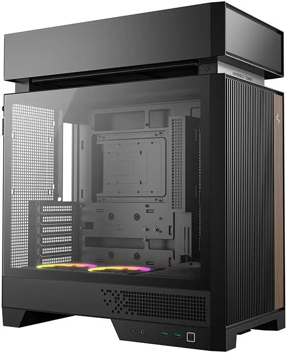 Общая информация Информация -Ключевые характеристики Компьютерный корпус формата Full Tower предназначен для установки материнских плат ATX, micro-ATX и mini-ITX. Поддерживает видеокарты длиной до 413 мм и процессорные кулеры высотой до 175 мм. В комплекте имеются два предустановленных 120 мм ARGB вентилятора и реализована поддержка до восьми вентиляторов, а также радиаторов СЖО размером до 360 мм. -Преимущества и отличия Корпус выделяется модульной конструкцией с физическим разделением тепловых зон и продуманными воздушными каналами, что эффективно предотвращает перегрев и обеспечивает стабильную работу даже мощных компонентов. Фронтальная панель из натурального дерева с вентиляционными прорезями не только улучшает эстетический вид, но и способствует отличной продуваемости. -Практичность Модель оснащена современными интерфейсами:двумя портами USB 3.0 Type-A, одним портом USB 3.2 Gen2 Type-C и комбинированным аудиоразъемом 3.5 мм. Упрощенное управление кабелями, поддержка заднего подключения материнских плат и специальный держатель для видеокарты делают сборку и обслуживание системы максимально удобными. -Уникальность Конструкция корпуса предусматривает фронтальное размещение блока питания и полностью инструментальную сборку, а также встроенный выдвижной крючок для наушников. Продуманная организация пространства с приподнятой верхней камерой и встроенной подсветкой вентиляторов придаёт системе современный внешний вид и позволяет реализовать высокоэффективное охлаждение для топовых комплектующих. Читать дальше Основные Форм-фактор Full Tower Макс. размер материнской платы ATX Совместимые материнские платы ATX, micro-ATX, mini-ITX Макс. высота процессорного кулера 175 мм Макс. длина видеокарты 413 мм Макс. длина блока питания 160 мм Форм-фактор блока питания ATX, SFX Цвет черный Конструкция корпуса Материал корпуса пластик, металл, дерево, стекло Материал передней панели сетка Прозрачное окно Да Материал окна закаленное стекло Пылевые фильтры Да Расположение пылевых фильтров сверху, снизу Горизонтальные слоты расширения Да 7 Вертикальные слоты расширения Нет Держатель видеокарты Да Поддержка мат. плат с BTF Да Подсветка корпуса Нет Контроллер подсветки Нет Ручка для переноски Нет Дверца фронтальной панели Нет Шумоизоляция Нет Дисплей Нет Система охлаждения Общее количество мест для вентиляторов 8 Вентиляторы в комплекте Да Количество установленных вентиляторов 2 Расположение вентиляторов сверху:3x120 мм или 2x140 мм спереди:2x140 мм сзади:1x120 мм или 1x140 мм снизу:2x120 мм установлены снизу:2x120 мм Разветвитель вентиляторов Нет Подсветка комплектных вентиляторов многоцветная адресная (ARGB) Поддержка жидкостного охлаждения Да Поддерживаемые размеры СЖО 120, 240, 280, 360 Расположение СЖО сверху:120/240/280/360 мм сзади:120 мм Блок питания Блок питания отсутствует Расположение блока питания спереди Система хранения Отсеки 2.5 дюймов Да 2 Отсеки 3.5 дюймов (внешние) Нет Отсеки 3.5 дюймов (внутренние) Да 3 Отсеки 5.25 дюймов Нет Комбинированные отсеки 2.5/3.5" Нет Съёмная корзина для накопителей Нет Безвинтовое крепление дисков Нет Передняя панель корпуса USB 2.0 Type-A Нет USB 2.0 Type-С Нет USB 3.2 Gen1 Type-A (5 Гбит/с) Да 2 USB 3.2 Gen2 Type-A (10 Гбит/с) Нет USB 3.2 Gen1 Type-C (5 Гбит/с) Нет USB 3.2 Gen2 Type-C (10 Гбит/с) Да 1 USB 3.2 Gen 2x2 (20 Гбит/с) Нет USB4 (до 40 Гбит/с) Нет Кардридер Нет Аудиоразъемы 1 x 3.5 мм (комбинированный) Габариты Высота 533.5 мм Ширина 235