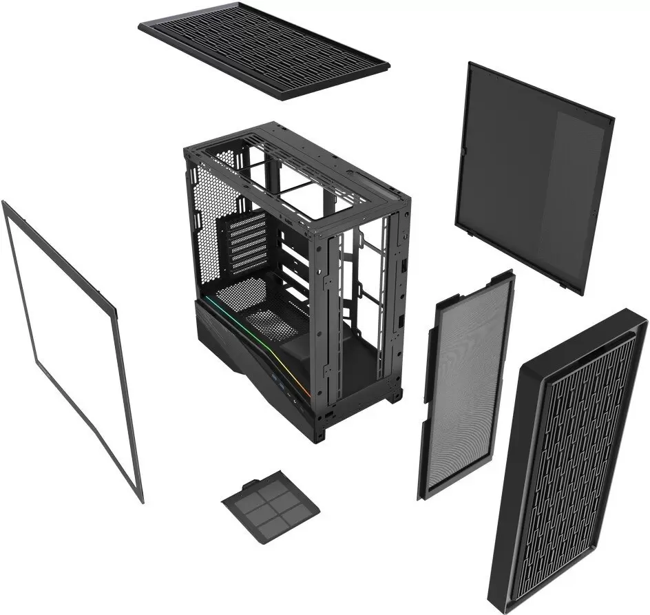 Номер товара - 540507-5. Full Tower, БП отсутствует, для плат ATX, без вентиляторов в комплекте, окно: закаленное стекло, видеокарта до 395 мм, охлаждение ЦП до 182 мм, пылевой фильтр - спереди/снизу, 2xUSB-A 3.2 5Гбит/с, 1xUSB-C 3.2 5Гбит/с, цвет черный