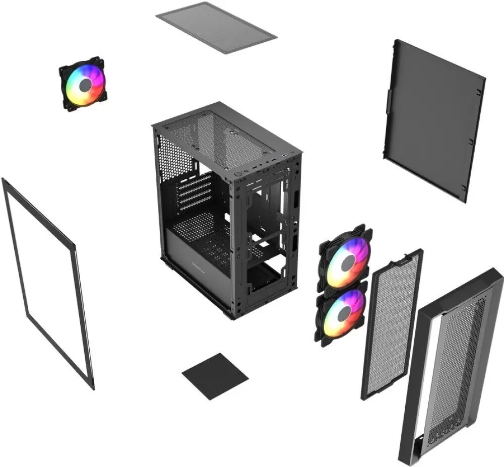 Общая информация Информация -Ключевые характеристики Компьютерный корпус Mini Tower формата поддерживает материнские платы micro-ATX и mini-ITX, оснащен прозрачным боковым окном из закаленного стекла и фронтальной сетчатой панелью для эффективной вентиляции. В комплекте три 120 мм ARGB вентилятора, предусмотрено до 7 мест для вентиляторов, поддержка радиаторов СЖО до 240 мм и совместимость с видеокартами длиной до 300 мм. -Преимущества и отличия Корпус выделяется отличной продуваемостью благодаря сетчатой передней панели и возможности установки жидкостного охлаждения. Предустановленные ARGB вентиляторы обеспечивают яркую подсветку и улучшают охлаждение, а наличие закаленного стекла делает корпус привлекательным для сборок с акцентом на дизайн. -Практичность Устройство оснащено всеми необходимыми современными портами на фронтальной панели:двумя USB 2.0 и одним USB 3.1, а также разъемами для наушников и микрофона. Поддержка стандартного блока питания ATX, наличие фильтров и возможности установки длинных видеокарт делают корпус универсальным выбором для большинства игровых и рабочих конфигураций. -Уникальность Совмещая стильный внешний вид с функциональностью, корпус сочетает закаленное стекло и современную ARGB-подсветку вентиляторов. Продуваемая конструкция и поддержка СЖО до 240 мм обеспечивают эффективное охлаждение даже при высокой нагрузке, что выгодно отличает данный корпус среди решений своего класса. Читать дальше Основные Форм-фактор Mini Tower Макс. размер материнской платы micro-ATX Совместимые материнские платы micro-ATX, mini-ITX Макс. высота процессорного кулера 160 мм Макс. длина видеокарты 300 мм Макс. длина блока питания 160 мм Форм-фактор блока питания ATX Цвет черный Конструкция корпуса Материал корпуса пластик, металл, стекло Материал передней панели сетка Прозрачное окно Да Материал окна закаленное стекло Пылевые фильтры Да Расположение пылевых фильтров сверху, спереди, снизу Горизонтальные слоты расширения Да 4 Вертикальные слоты расширения Нет Держатель видеокарты Нет Поддержка мат. плат с BTF Нет Подсветка корпуса Нет Контроллер подсветки Нет Ручка для переноски Нет Дверца фронтальной панели Нет Шумоизоляция Нет Дисплей Нет Система охлаждения Общее количество мест для вентиляторов 7 Вентиляторы в комплекте Да Количество установленных вентиляторов 3 Расположение вентиляторов спереди:2x120 мм сверху:2x120 мм сзади:1x120 мм снизу:2x120 мм установлены спереди:2x120 мм сзади:1x120 мм Подсветка комплектных вентиляторов многоцветная адресная (ARGB) Поддержка жидкостного охлаждения Да Поддерживаемые размеры СЖО 120, 140, 240 Расположение СЖО спереди:120/140/240 мм Блок питания Блок питания отсутствует Расположение блока питания снизу Система хранения Отсеки 2.5 дюймов Да 2 Отсеки 3.5 дюймов (внешние) Нет Отсеки 3.5 дюймов (внутренние) Да 1 Отсеки 5.25 дюймов Нет Комбинированные отсеки 2.5/3.5" Нет Съёмная корзина для накопителей Нет Безвинтовое крепление дисков Нет Передняя панель корпуса USB 2.0 Type-A Да 2 USB 2.0 Type-С Нет USB 3.2 Gen1 Type-A (5 Гбит/с) Да 1 USB 3.2 Gen2 Type-A (10 Гбит/с) Нет USB 3.2 Gen1 Type-C (5 Гбит/с) Нет USB 3.2 Gen2 Type-C (10 Гбит/с) Нет USB 3.2 Gen 2x2 (20 Гбит/с) Нет USB4 (до 40 Гбит/с) Нет Кардридер Нет Аудиоразъемы 2 x 3.5 мм (микрофонный/линейный) Габариты Высота 387 мм Ширина 195 мм Глубина 335 мм Вес 4.4 кг Метки Метки с вентиляторами в комплекте, с поддержкой СЖО 240 мм, с пылевыми фильтрами, с закаленным стеклом, продувае