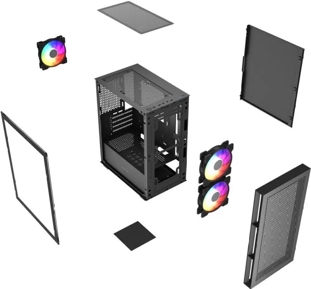 Общая информация Информация -Ключевые характеристики Компьютерный корпус формата Mini Tower поддерживает материнские платы micro-ATX и mini-ITX, обладает компактными размерами 387x195x335 мм и весит 4.4 кг. В корпусе установлены три 120-миллиметровых ARGB вентилятора, предусмотрено до 7 мест для вентиляторов, а также поддержка радиаторов жидкостного охлаждения до 240 мм. Боковая стенка выполнена из закаленного стекла, что позволяет эффектно демонстрировать внутренние компоненты. -Преимущества и отличия Модель выделяется хорошей продуваемостью благодаря сетчатой фронтальной панели и предустановленным ARGB вентиляторам. Корпус поддерживает установку видеокарт длиной до 300 мм и процессорных кулеров высотой до 160 мм, что дает широкие возможности для сборки производительных и тихих систем. Поддержка современных интерфейсов, включая один USB 3.1 на передней панели, обеспечивает удобство подключения периферии. -Практичность В корпусе реализовано удобное размещение накопителей:предусмотрено два отсека под 2.5-дюймовые SSD и один под 3.5-дюймовый HDD. Нижнее расположение блока питания способствует лучшей организации кабелей и воздушного потока. Для эффективного охлаждения внутри предусмотрено несколько позиций для установки дополнительных вентиляторов и радиатора СЖО, что важно при выборе корпуса для игровой или рабочей станции. -Уникальность Одной из ключевых особенностей является сочетание стильного дизайна с закаленным стеклом и акцентом на продуваемость благодаря сетчатой передней панели. Предустановленные ARGB вентиляторы создают яркую подсветку без необходимости дополнительной покупки, а поддержка жидкостного охлаждения и современного интерфейса USB 3.1 делает корпус отличным выбором для сборки системы с актуальными требованиями к производительности и внешнему виду. Читать дальше Основные Форм-фактор Mini Tower Макс. размер материнской платы micro-ATX Совместимые материнские платы micro-ATX, mini-ITX Макс. высота процессорного кулера 160 мм Макс. длина видеокарты 300 мм Макс. длина блока питания 160 мм Форм-фактор блока питания ATX Цвет черный Конструкция корпуса Материал корпуса пластик, металл, стекло Материал передней панели сетка Прозрачное окно Да Материал окна закаленное стекло Пылевые фильтры Да Расположение пылевых фильтров сверху, снизу Горизонтальные слоты расширения Да 4 Вертикальные слоты расширения Нет Держатель видеокарты Нет Поддержка мат. плат с BTF Нет Подсветка корпуса Нет Контроллер подсветки Нет Ручка для переноски Нет Дверца фронтальной панели Нет Шумоизоляция Нет Дисплей Нет Система охлаждения Общее количество мест для вентиляторов 7 Вентиляторы в комплекте Да Количество установленных вентиляторов 3 Расположение вентиляторов спереди:2x120 мм сверху:2x120 мм сзади:1x120 мм снизу:2x120 мм установлены спереди:2x120 мм сзади:1x120 мм Подсветка комплектных вентиляторов многоцветная адресная (ARGB) Поддержка жидкостного охлаждения Да Поддерживаемые размеры СЖО 120, 140, 240 Расположение СЖО спереди:120/140/240 мм Блок питания Блок питания отсутствует Расположение блока питания снизу Система хранения Отсеки 2.5 дюймов Да 2 Отсеки 3.5 дюймов (внешние) Нет Отсеки 3.5 дюймов (внутренние) Да 1 Отсеки 5.25 дюймов Нет Комбинированные отсеки 2.5/3.5" Нет Передняя панель корпуса USB 2.0 Type-A Да 2 USB 2.0 Type-С Нет USB 3.2 Gen1 Type-A (5 Гбит/с) Да 1 USB 3.2 Gen2 Type-A (10 Гбит/с) Нет USB 3.2 Gen1 Type-C (5 Гбит/с) Нет USB 3.2 Gen2 Type-C