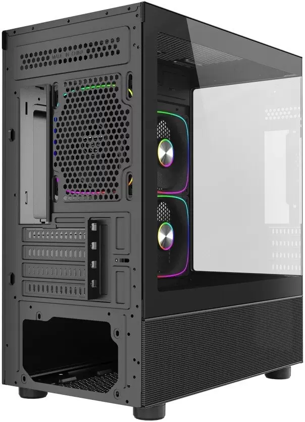 Номер товара - 540413-5. Mini Tower, БП отсутствует, для плат micro-ATX/mini-ITX, с 3 вентиляторами в комплекте, окно: закаленное стекло, видеокарта до 350 мм, охлаждение ЦП до 165 мм, пылевой фильтр - сверху/снизу, 2xUSB 2.0, 1xUSB-A 3.2 5Гбит/с, цвет черный