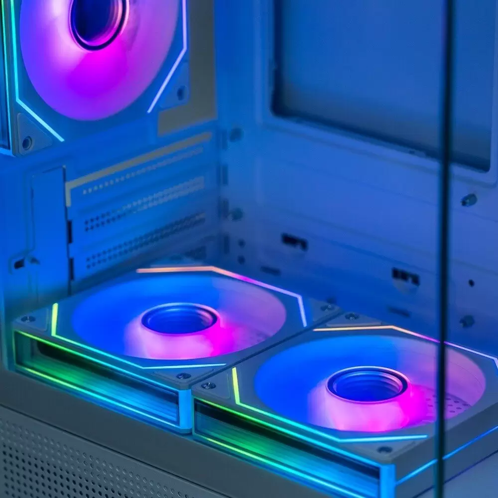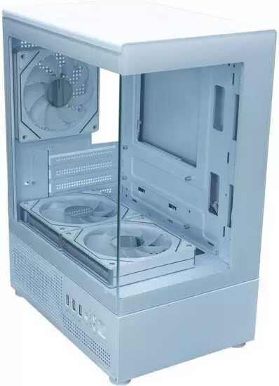 Номер товара - 541419-5. Mini Tower, БП отсутствует, для плат micro-ATX/mini-ITX, с 3 вентиляторами в комплекте, с контроллером вращения, окно: закаленное стекло, видеокарта до 280 мм, охлаждение ЦП до 160 мм, пылевой фильтр - сверху/снизу/сбоку (на одной из стенок), 2xUSB 2.0, 1xUSB-A 3.2 5Гбит/с, цвет белый