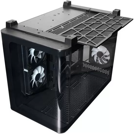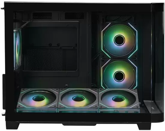 Mini Tower, БП отсутствует, для плат micro-ATX/mini-ITX, с 6 вентиляторами в комплекте, с контроллером вращения, окно: закаленное стекло, видеокарта до 445 мм, охлаждение ЦП до 160 мм, пылевой фильтр - сверху/снизу/сбоку (на одной из стенок), 1xUSB 2.0, 1xUSB-A 3.2 5Гбит/с, 1xUSB-C 3.2 10Гбит/с, цвет черный