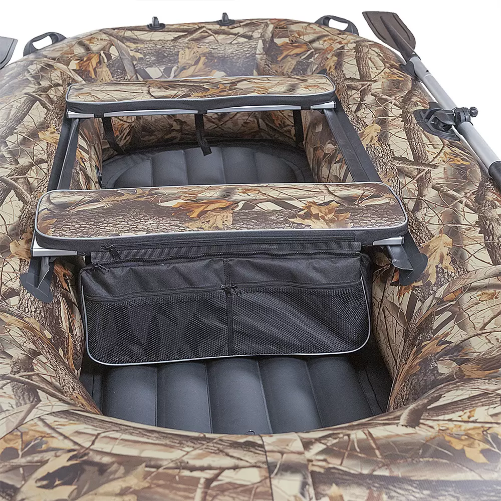 Лодка супер !!!! Использовал весной после ледохода на р Северная Двина г. Архангельск. Плавали в двоем, места внутри предостаточно. Большой плюс скамейки на полозьях, т.е. очень удобно регулировать и настраивать под весла. Это преимущество ощущается после часовой гребли на веслах (спина не так устает как на нерегулируемых скамейках). На веслах лодкой очень легко управлять, приходилось плавать в затопленных кустах снимали весла и плыли как на байдарке. Клапана лодки Итальянские хорошо держат воздух (лодка была накачана перед первым использованием до предела ножным насосом эксплуатировалась каждый день в течении трех недель подкачивать не потребовалось) хранилась и транспортировалась в надутом состоянии. не помешаеть доплнительная опция AIRDECK (надувной пол), который лучше вставлять в лодку в спущеную на половину лоду (в сдутом виде) сверху положить кусок вырезанного линолиума. Линолиум лучше вырезать по размерам надутого пола с небольшим припуском 5-10 мм. чтобы края линолиума зашли под борта лодки. Сначала надувается пол, а потом бвллоны лодки до максимального давления. Ножной насос максимального давления не дасть, поэтому лучше использовать электро насос Bravo c встроеными 2-я манометрами если эксплуатация лодки подразумевается под мотором. А если будете эксплуатировать лодку на веслах то хватит и ножного насоса. Почему необходимо стелить на дно линолиум? 1) Если в лодке будет находится курящий человек, то падающий пепел не прожгет дно лодки. 2) Легче мыть лодку от песка. 3) При проливе топлива небудет соприкосновения нефтепродуктов с дном лодки. Лодка легко переносится одним человеком на плече, мне приходилось подыматься в гору от реки на высоту 30 метров. Так же можно переносить в двоем за страховочные леера. Весла при переноске надежно крепятся в весло держатели. Хранить лучше в надутом состоянии круглый год, меньше истерается и слеживается материал.