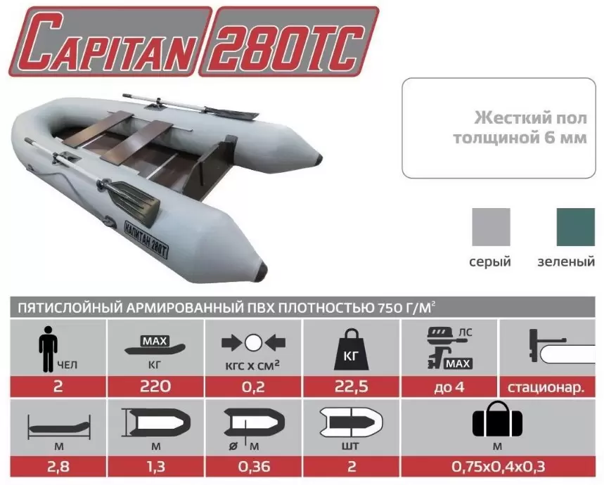 Информация о характеристиках, комплекте поставки и внешнем виде товара является справочной и получена из открытых источников (официальные сайты и каталоги производителей). Перед покупкой уточняйте у продавца интересующие Вас параметры и актуальную цену на Моторно-гребная лодка Тонар Капитан 280ТС (серый).