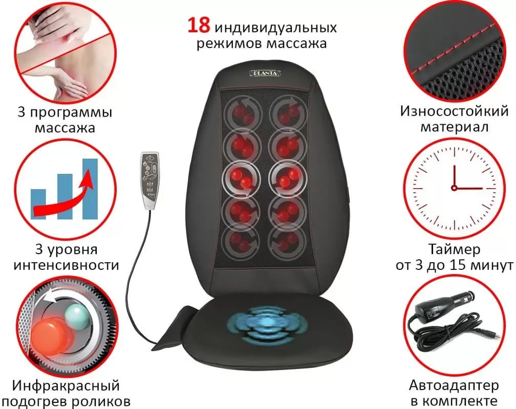 Изменение интенсивности массажа; Таймер; Функция подогрева |