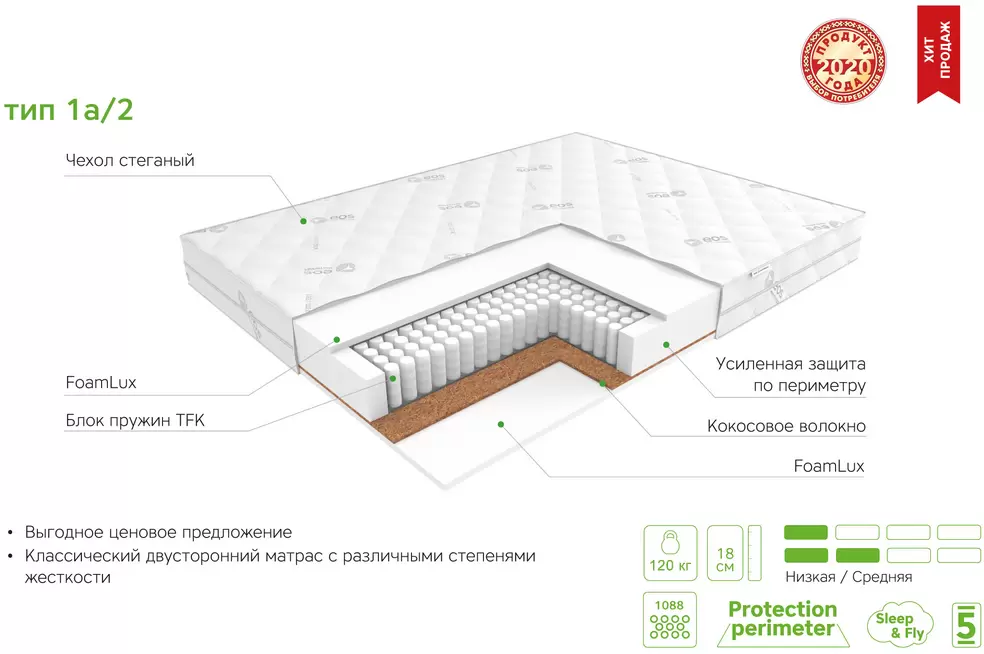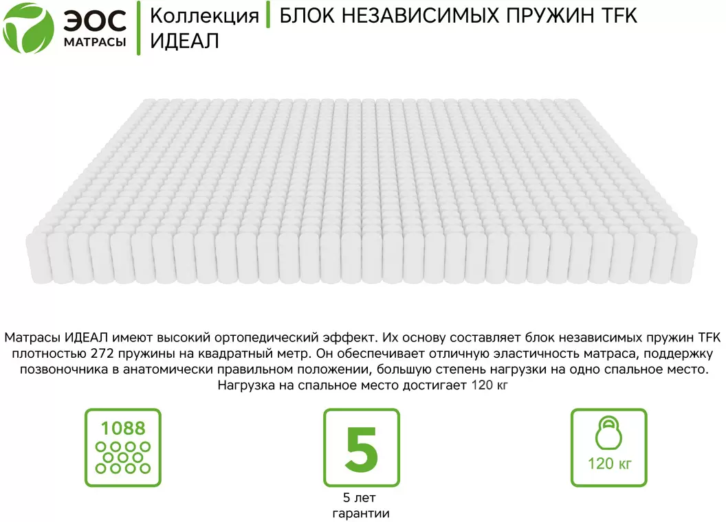 Информация о характеристиках, комплекте поставки и внешнем виде товара является справочной и получена из открытых источников (официальные сайты и каталоги производителей). Перед покупкой уточняйте у продавца интересующие Вас параметры и актуальную цену на Матрас ЭОС Идеал Тип 1а/2 140x200 (трикотаж).