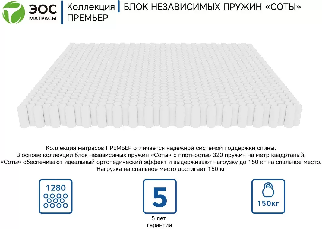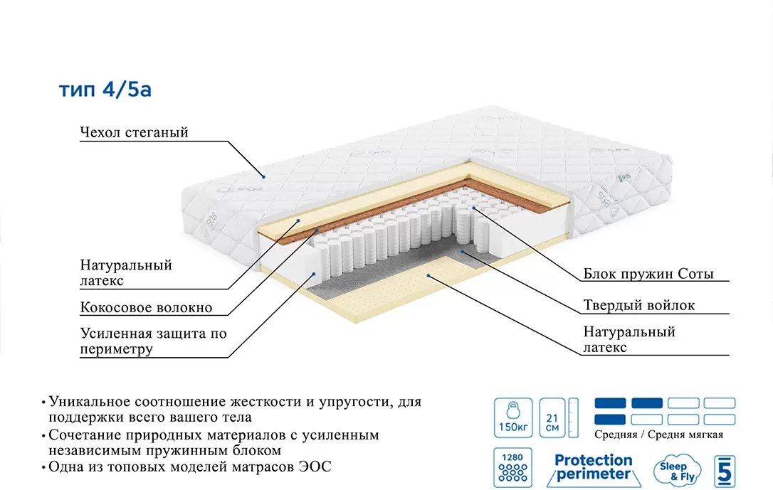 Информация о характеристиках, комплекте поставки и внешнем виде товара является справочной и получена из открытых источников (официальные сайты и каталоги производителей). Перед покупкой уточняйте у продавца интересующие Вас параметры и актуальную цену на Матрас ЭОС Премьер Тип 4/5а 160x190 (трикотаж).