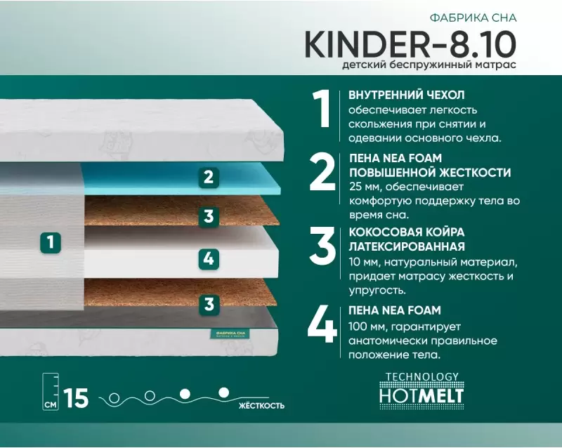 Информация о характеристиках, комплекте поставки и внешнем виде товара является справочной и получена из открытых источников (официальные сайты и каталоги производителей). Перед покупкой уточняйте у продавца интересующие Вас параметры и актуальную цену на Матрас Фабрика сна Киндер-8 140x200.