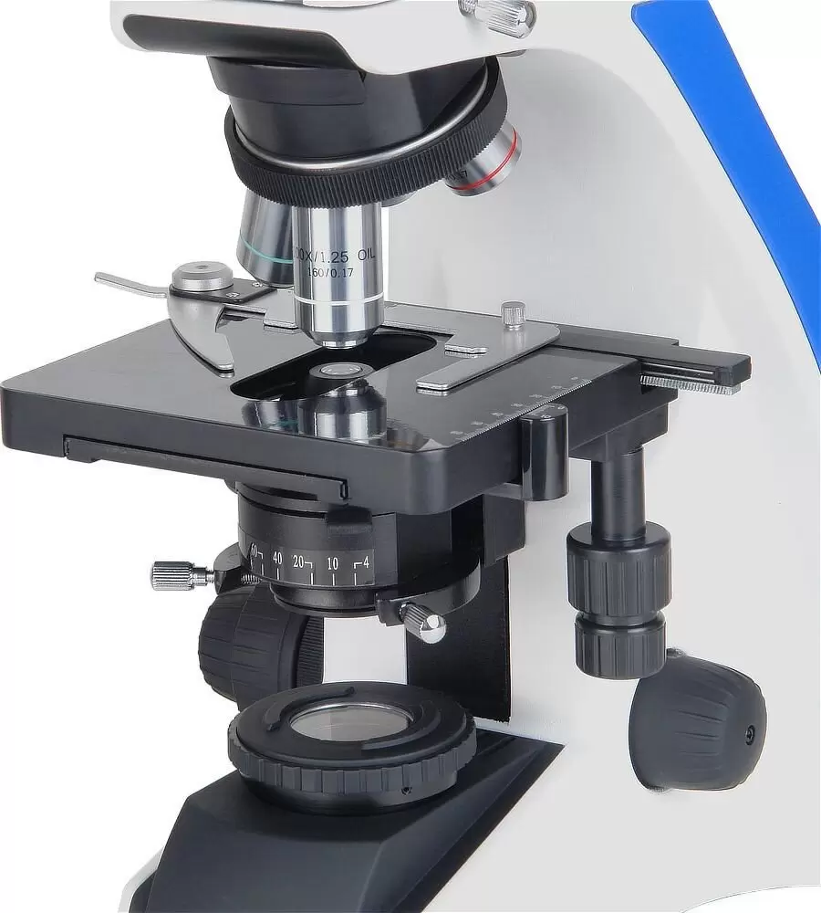 Микроскоп предназначен для исследований в проходящем свете по методу светлого поля. Бинокулярная поворотная визуальная насадка с регулировкой по высоте. Увеличение микроскопа в базовой комплектации 40х-1000х, с дополнительными окулярами 40х-2000х. Револьверное устройство на 5 объективов.