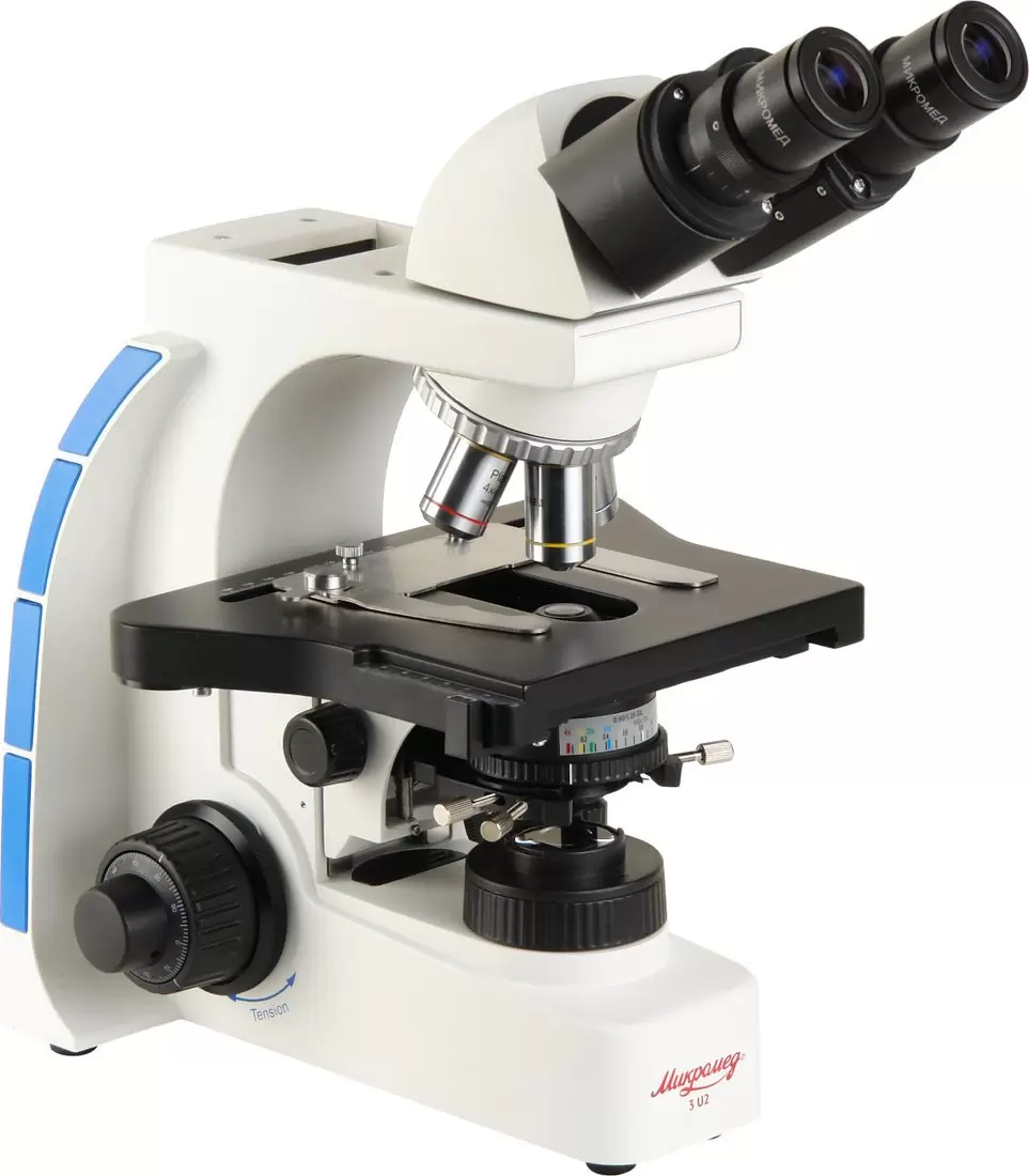 Микроскоп Микромед 3 (U2) применяется в биологии для наблюдений и морфологических исследований, в медицине с помощью микроскопа можно изучать окрашенные и неокрашенные биологические объекты в виде мазков и срезов. Также микроскоп применим во многих областях науки для разнообразных исследований в проходящем свете по методу светлого поля.
