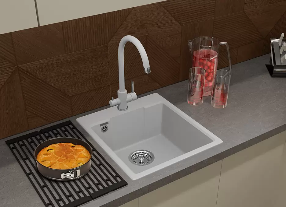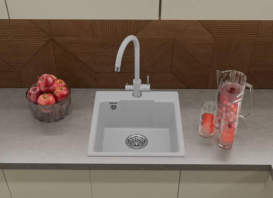 Код 9564854. Работаем без выходных. Быстрая доставка. Грамотная консультация и помощь в выборе. Не работаем с юр. лицами . Доступна 1 шт. О товаре: врезная на столешницу, искусственный камень, размеры: 44x49 см, глубина чаши: 18 см, в шкаф шириной от 45 см