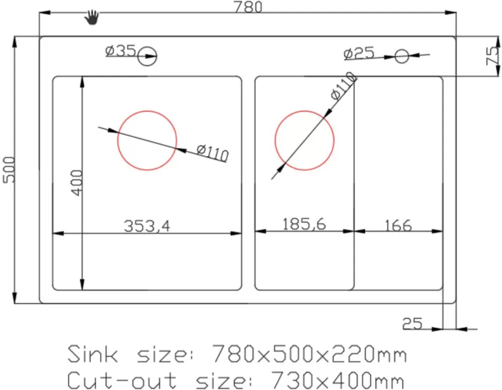 | Толщина материала, мм | 2 (верх 2мм, стенки/низ чаши 1,25мм) |