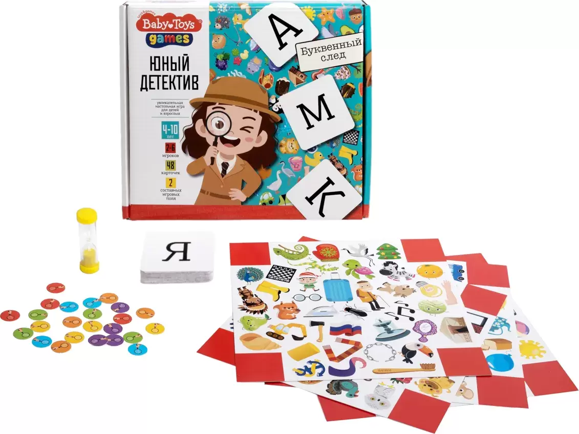Информация о характеристиках, комплекте поставки и внешнем виде товара является справочной и получена из открытых источников (официальные сайты и каталоги производителей). Перед покупкой уточняйте у продавца интересующие Вас параметры и актуальную цену на Настольная игра Baby Toys Юный детектив. Буквенный след 05243.
