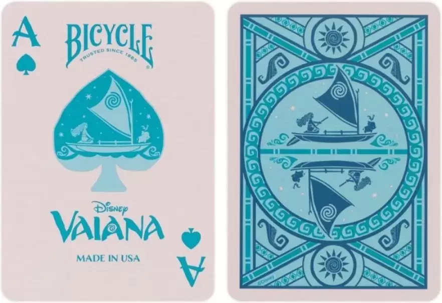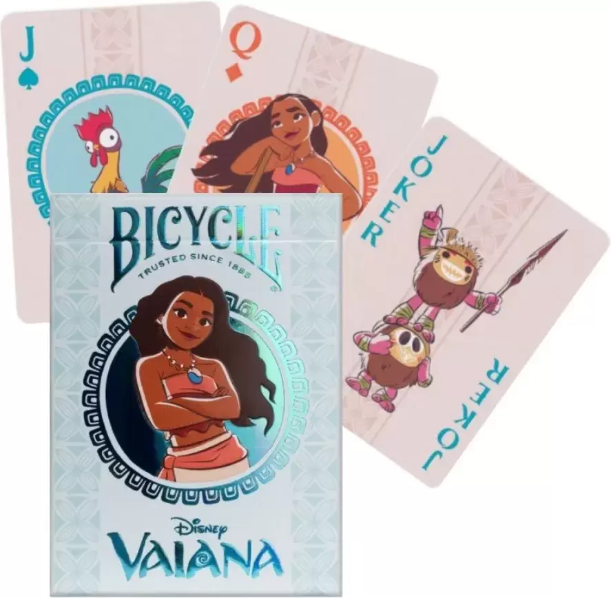 Отправляйтесь в увлекательный игровой вечер с игральными картами Bicycle Vaiana. Эта колода украшена потрясающими иллюстрациями по мотивам любимого диснеевского мультфильма «Моана», включая таких культовых персонажей, как Моана, Мауи и их очаровательных спутников Пуа и Хей-Хей.