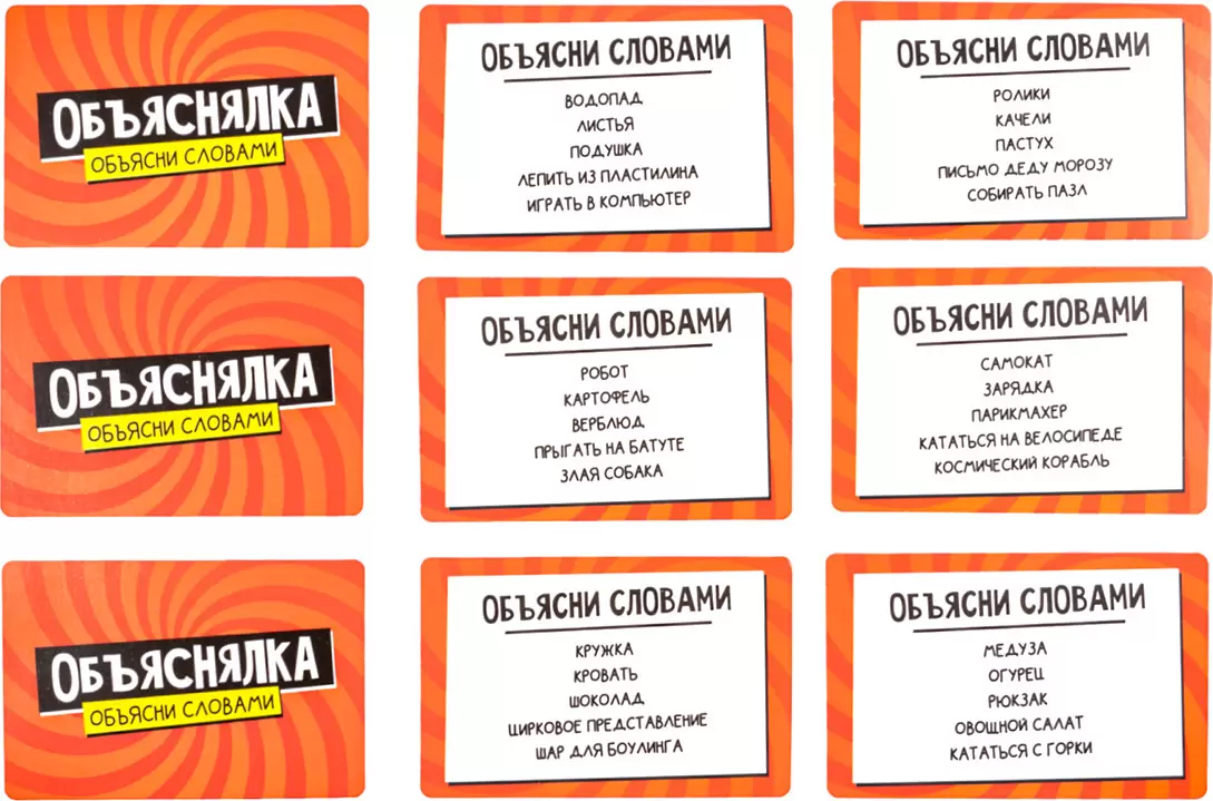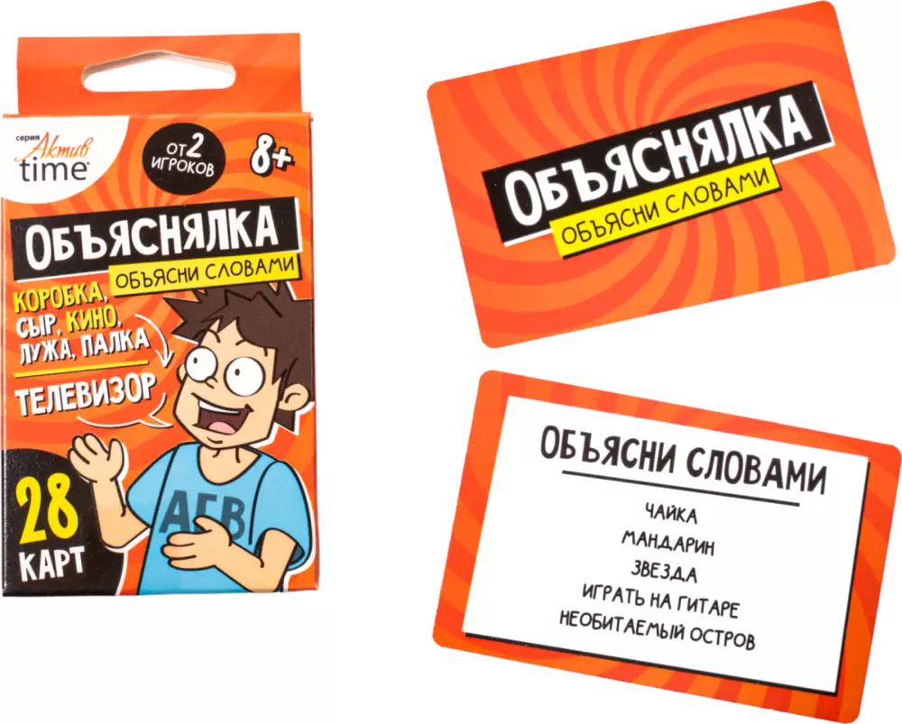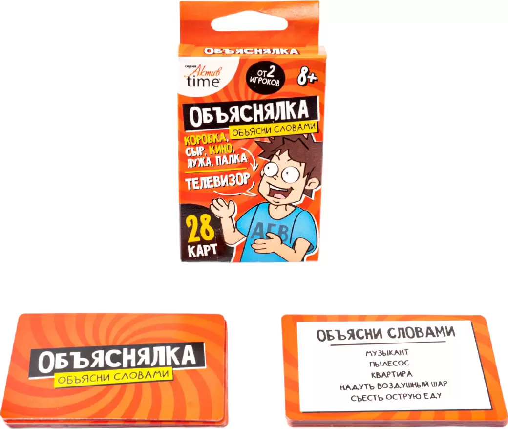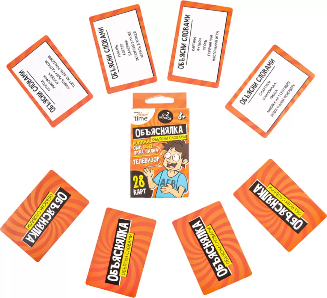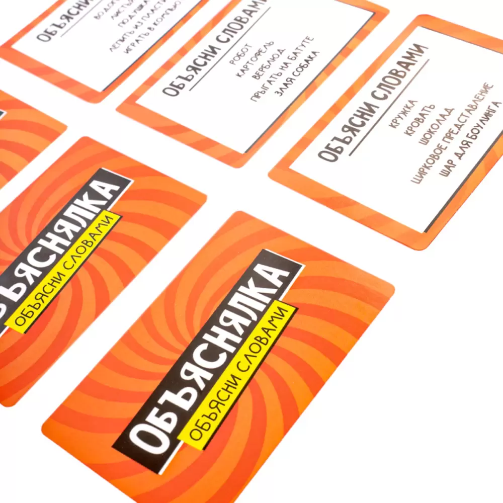 Веселая настольная игра Объяснялка «Объясни словами». Серия «Актив time» — это игра для компании из 2 и более игроков. Тяни задание и объясняй заданные слова без использования однокоренных слов!