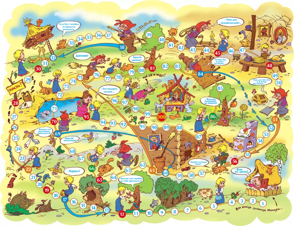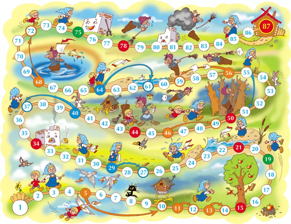 Проведите досуг за настольной игрой-ходилкой «Гуси-лебеди, Баба-Яга» . Правила игры знакомы всем с детства: бросай кубик и передвигай свою фишку. Кто из вас придет к финишу первым?